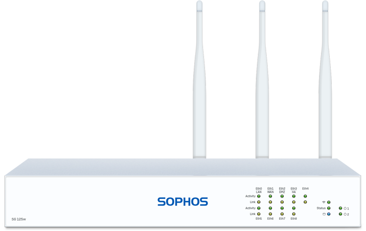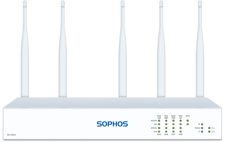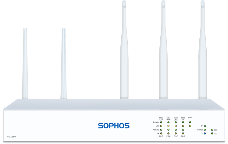 Alle unsere Desktop Appliances sind mit integriertem Wireless Controller zum Anschluss und zur Verwaltung von Sophos Access Points erhältlich. Für noch bessere Performance und Reichweite können Sie auch einen zweiten WLAN-Sender zur SG 135w hinzufügen.